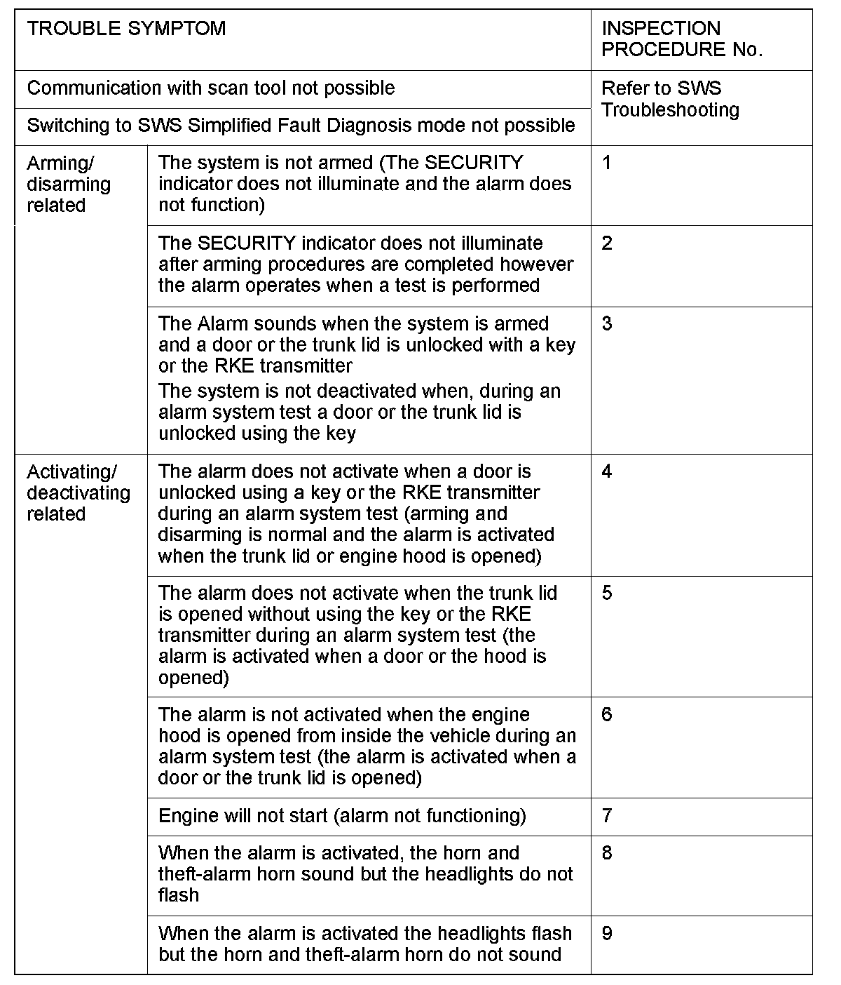 Inspection Chart For Trouble Symptoms: