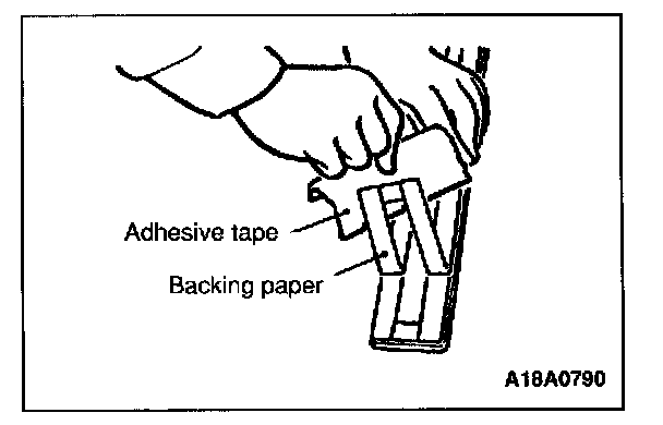 NOTE: If you attach the adhesive tape to the edge of the backing paper, it will be easy to tear off.
