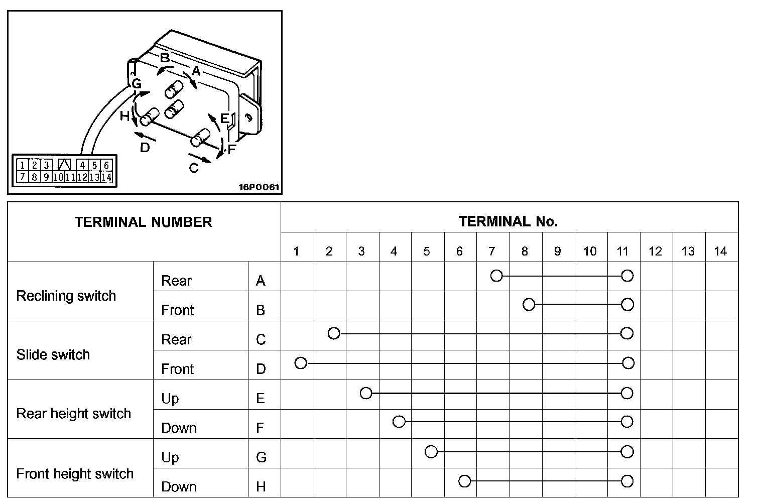 INSPECTIONPOWER SEAT MANUAL SWITCH CONTINUITY CHECK