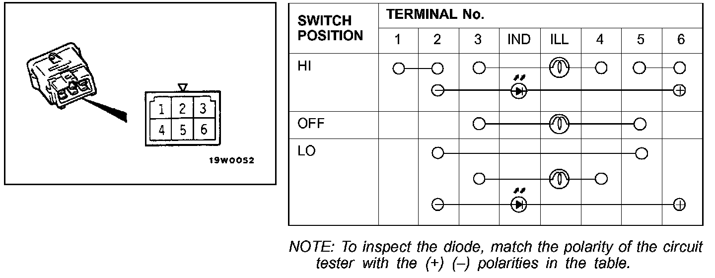 1. Disconnect the limit switch connector and connect a circuit tester to the terminals.