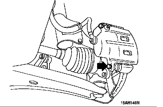 2. Remove guide pin. Lift caliper assembly upwards and support it with wires.