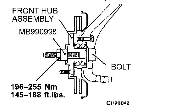 5. Set the special tool to the front hub assembly as shown in the illustration.