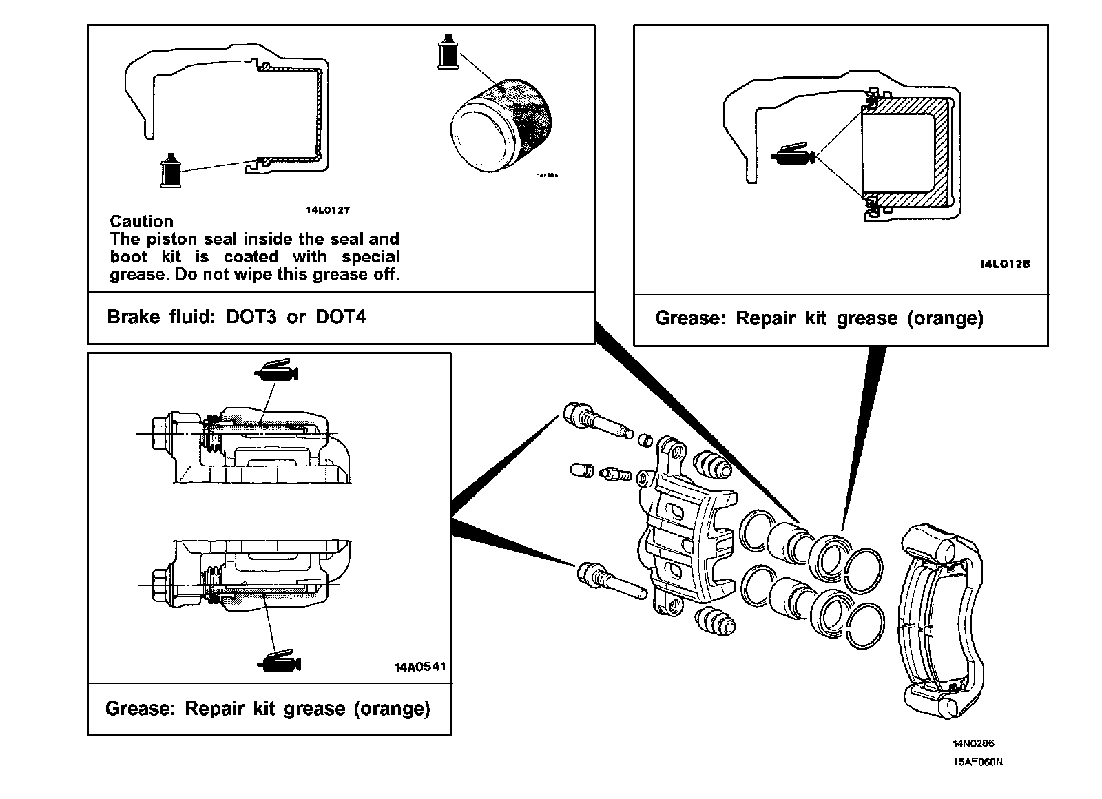 2) Clean piston surface and inner cylinder with alcohol, or specified brake fluid.