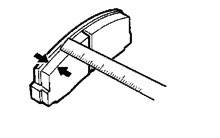 Measure thickness at the thinnest and worn area of the pad. Replace pad assembly when pad thickness is less than the limit value.