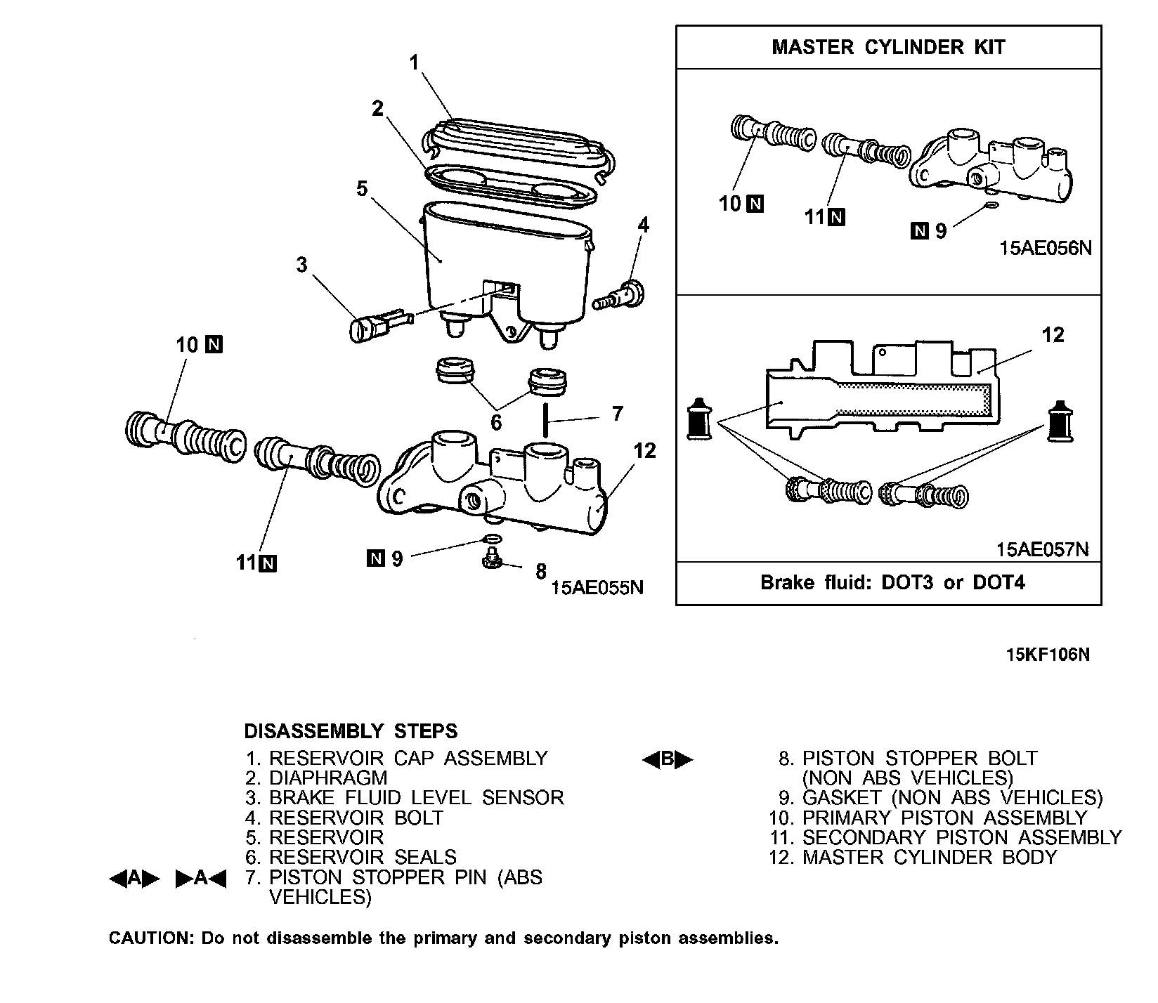 ^ Check the primary and secondary pistons for rust, scoring, wear, damage or wear.