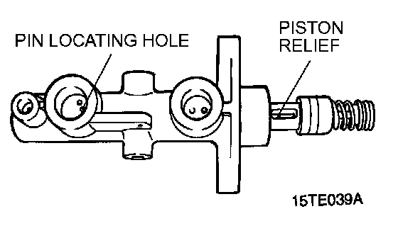 2. Push the primary piston into the bore and then while depressing the primary piston drop the piston stopper pin through the locating hole into the secondary piston relief.
