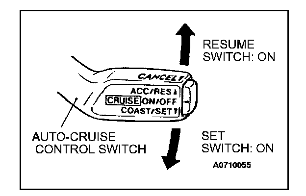 Using the Auto-cruise Control Indicator Light.1. Turn the ignition switch ON with the SET switch on.Then turn the RESUME switch ON within 1 second.