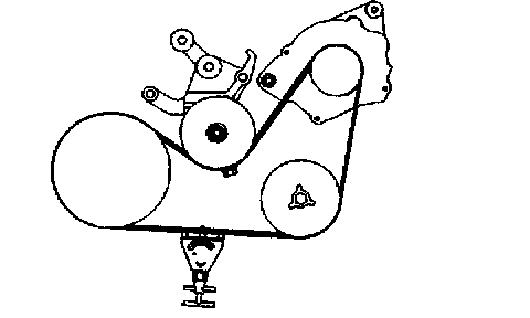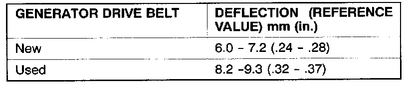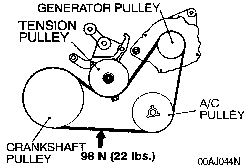 1. Use a belt tension gauge to check belt tension, or check deflection by applying 98 N (22 lbs.) to the shown point.