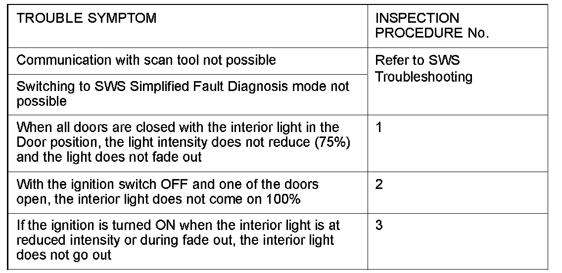Inspection Chart For Trouble Symptoms: