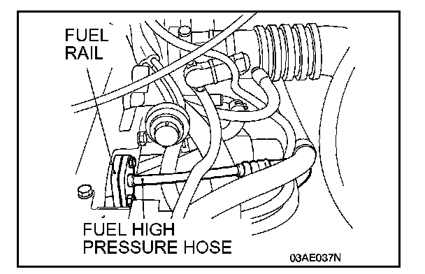 2. Disconnect the fuel high pressure hose at the fuel rail side.