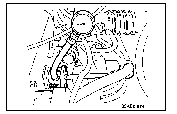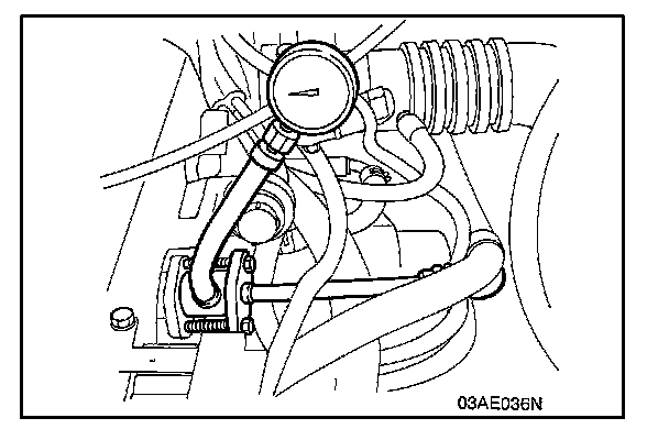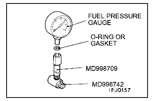 Use a suitable O-ring or gasket between the fuel pressure gauge and the special tool so as to seal in order to prevent fuel leakage at this time.