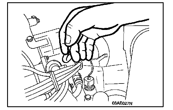 11. Racing the engine repeatedly, hold the fuel return hose lightly with fingers to feel that fuel pressure is present in the return hose.