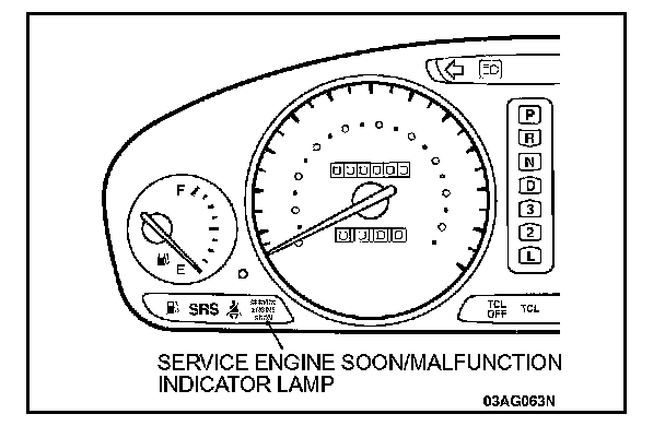 Moreover, when the ignition switch is turned off, the lamp is switched off. Even if the ignition switch is turned on again, the lamp does not illuminate until the malfunction is detected. Here, immediately after the ignition switch is turned on, the Service Engine Soon/Malfunction Indicator Lamp is lit for five seconds to indicate that the Service Engine Soon/Malfunction Indicator Lamp operates normally.