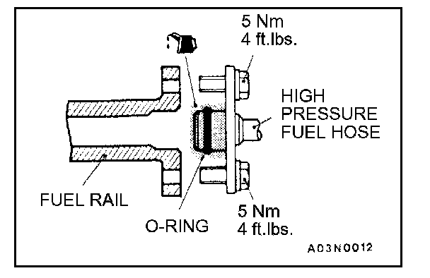 CAUTION: Be sure not to let engine oil in the fuel rail.