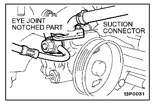 Secure the notched part of the pressure hose eye joint at the position where it contacts the oil pump suction connector.