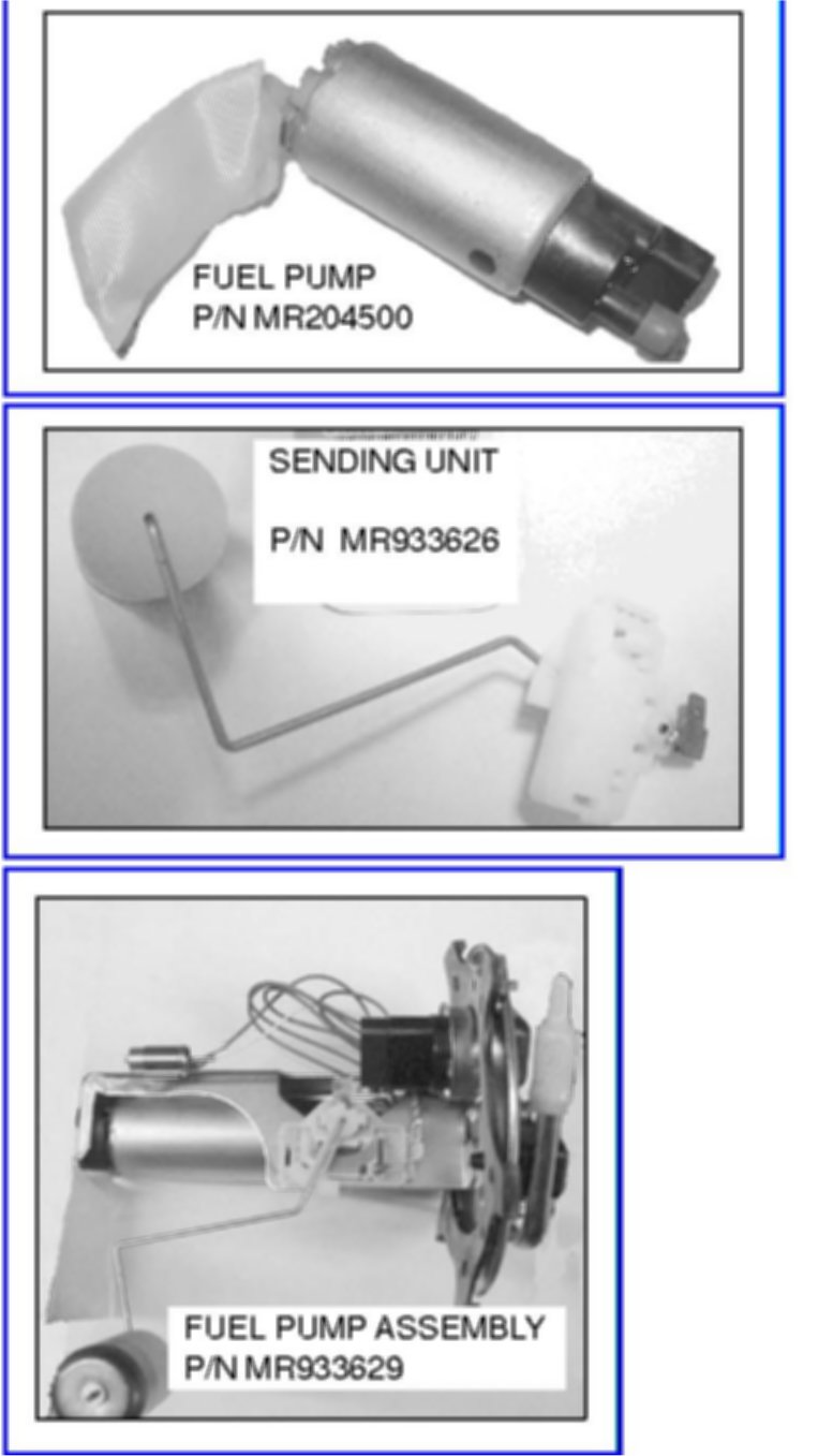 Fuel Pump and Sending Unit Availability - 1997-2003 Diamante. If the replacement of a fuel pump or sending unit become necessary, the parts are available separately. Please replace only the needed part instead of the entire assembly, p/n MR933629. The fuel pump, p/n MR204500, is just the pump without the sending unit. The fuel gauge sending unit, p/n MR933626, is just the sending unit without the pump.