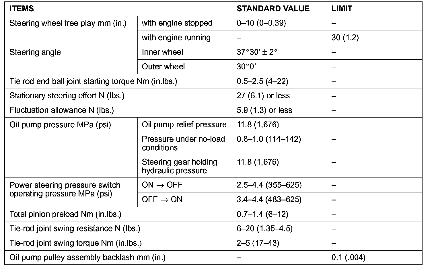 SERVICE SPECIFICATIONS