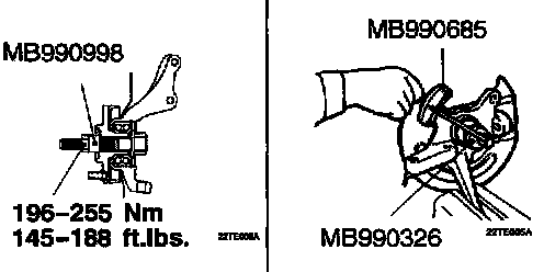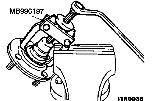 1. Attach the special tools to the knuckle and hub.
