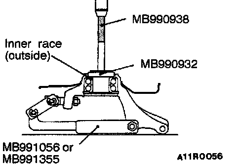 2. Remove the wheel bearing inner race from the front hub by using the special tool, as shown in the illustration.
