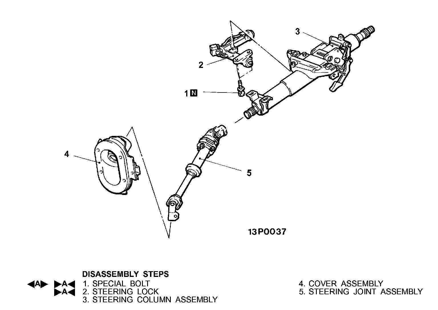 ]]A[[ STEERING LOCK CYLINDER/STEERING LOCK BRACKET/SPECIAL BOLT INSTALLATION