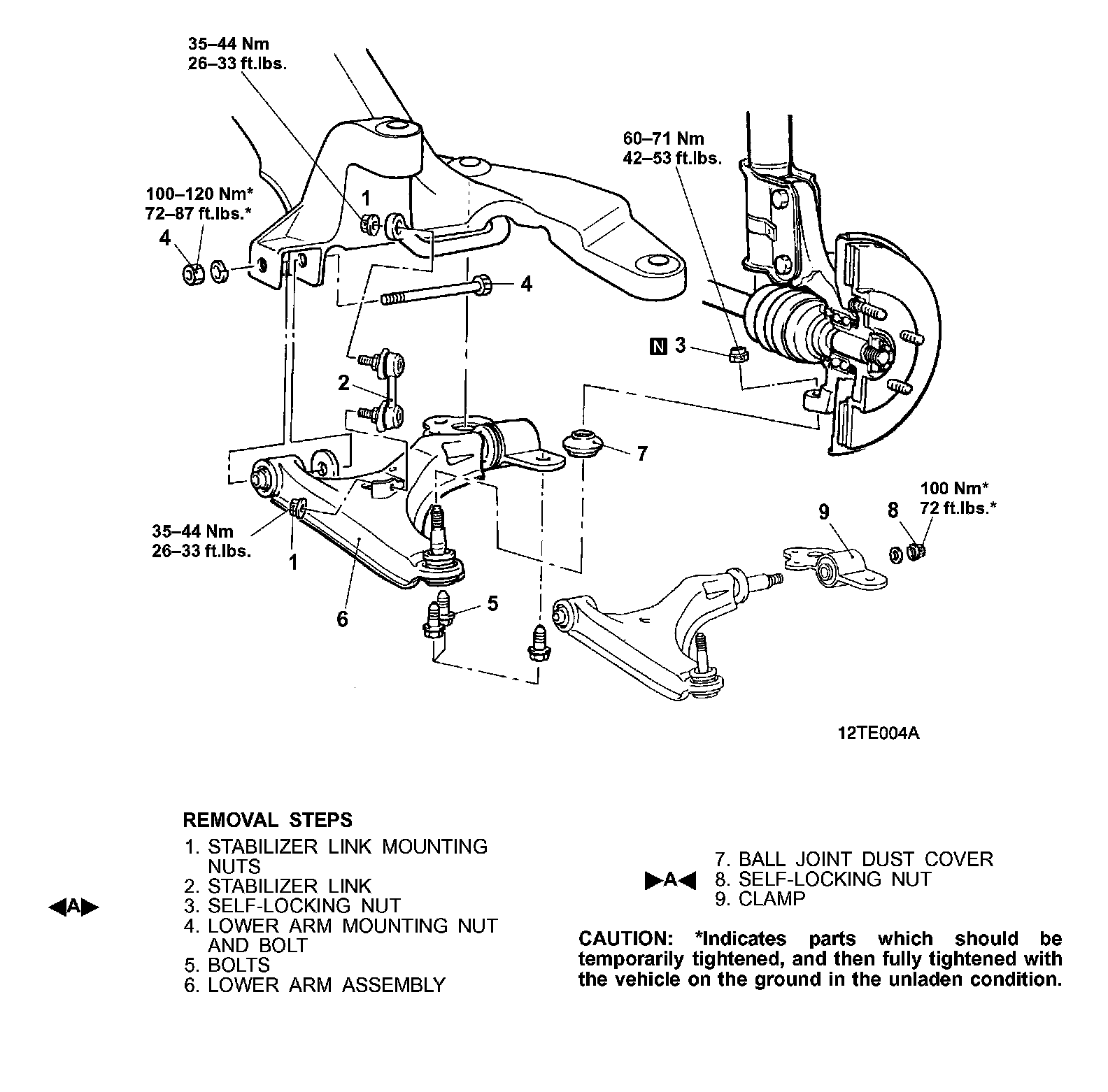 CAUTION: *Indicates parts which should be temporarily tightened, and then fully tightened with the vehicle on the ground in the unladen condition.