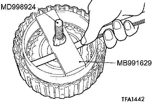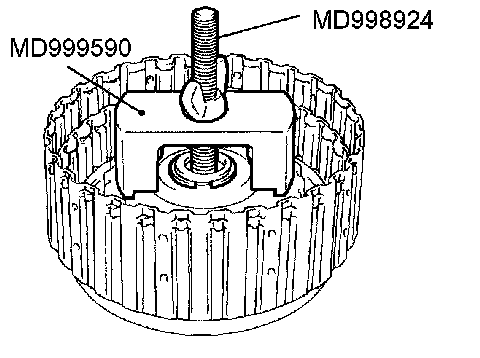 Check that the clearance between the snap ring and the clutch reaction plate is within the standard value. When measuring the clearance, use the special tool to press the clutch reaction plate evenly. If not within the standard value, select a snap ring to adjust.