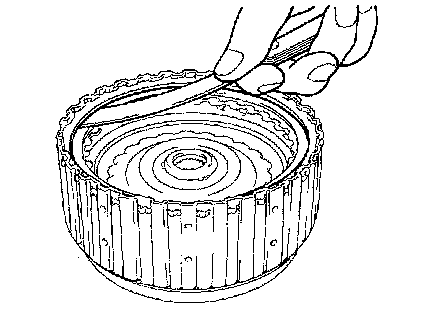 Check that the clearance between the snap ring and the clutch reaction plate is within the standard value. When measuring the clearance, press the clutch reaction plate by the weight of 49 N (11 lbs.) evenly. If not within the standard value, select a snap ring to adjust.