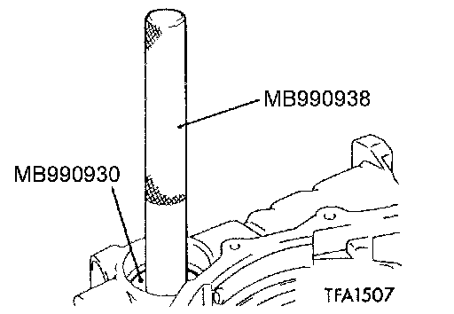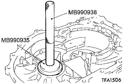 1. Use the special tools to tap the differential bearing outer race in the transaxle case.