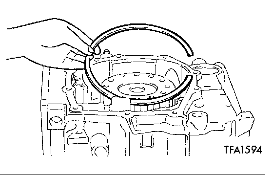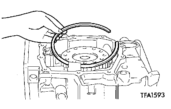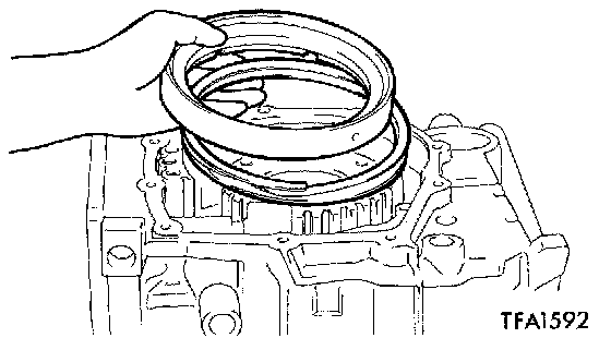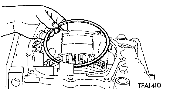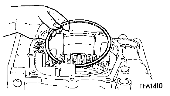 4. Install the transfer gear, low-reverse brake piston, return spring, and spring retainer, one-way clutch and O-ring.