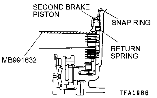 11. Install the return spring, second brake piston and snap ring.