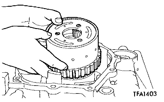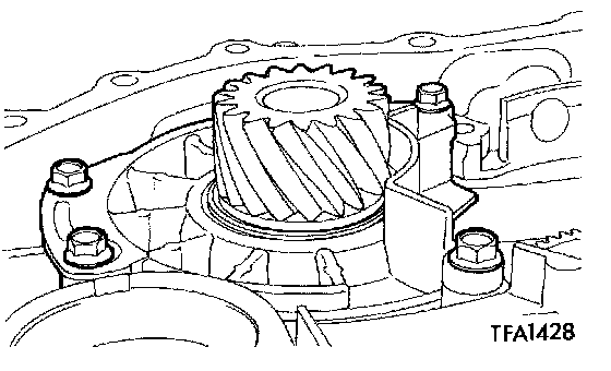 23. Tighten the eight mounting bolts of the transfer drive gear to the specified torque.