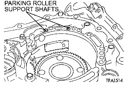 24. Install the parking pawl, spacer, and spring. Then install the parking pawl shaft.