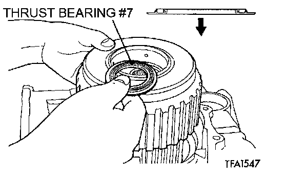 38. Install the reverse and overdrive clutch, and thrust bearing #7.