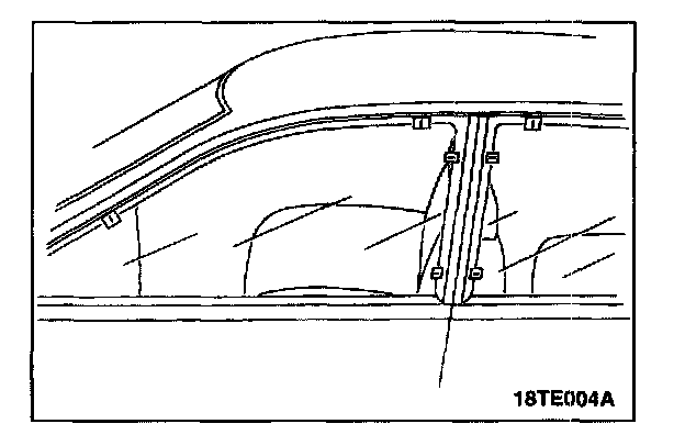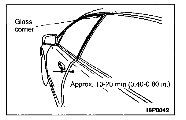 1. Place masking tape on the edge of the door glass in the positions as shown in the illustration.