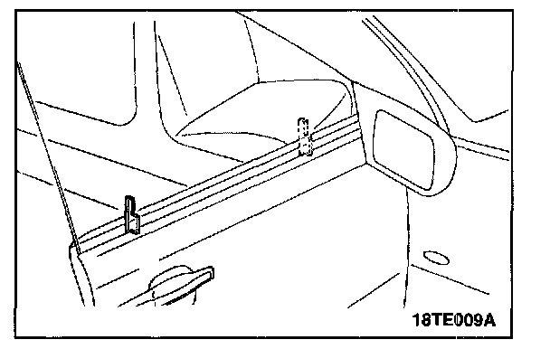 5. If the door glass winding effort is high (manual regulator) or the glass operation is slow (power regulator) or the door glass rattles, remove the belt line molding and check the door glass stabilizer setting.