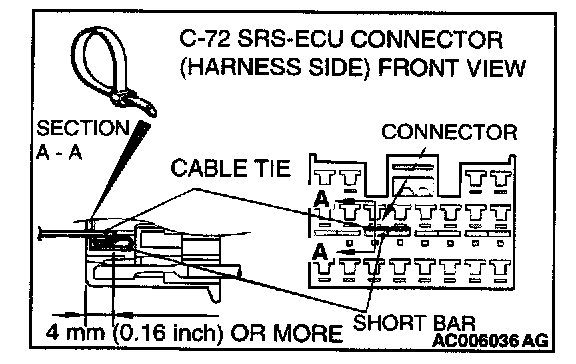 CAUTION: Insert an insulator such as a cable tie to a depth of 4 mm (0.16 inch) or more, otherwise the short bar will not cable tie release.