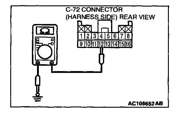 2. Check the continuity between terminals 12 and body ground.