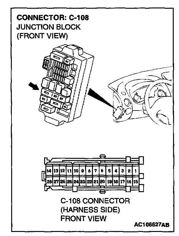 1. Disconnect junction block connector C-108, and measure at the wiring harness side.