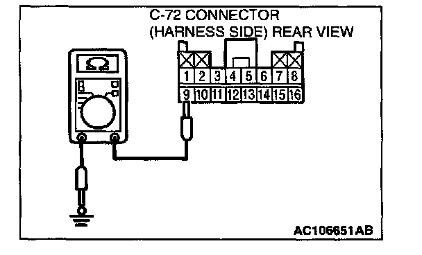 2. Check the continuity between terminals 9 and body ground.