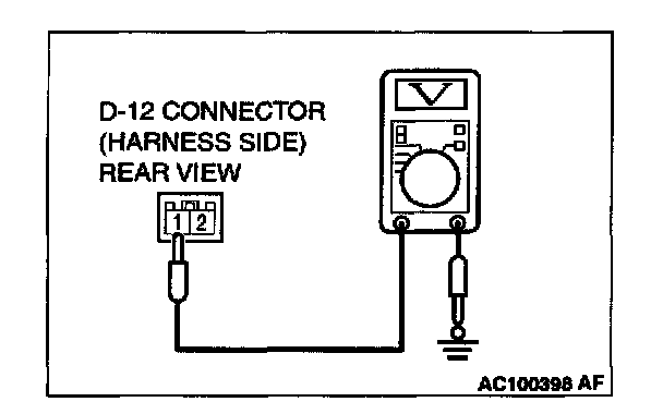 1. Disconnect left-side impact sensor connector D-12, and measure at the wiring harness side.