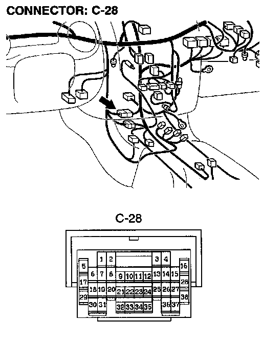 STEP 3. Check connectors B-41 at Park/Neutral position switch, C-28 at intermediate connector and C-112 at junction block for damage.