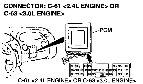 STEP 9. Check connector C-61 <2.4L Engine> or C-63 <3.0L Engine> at PCM for damage.