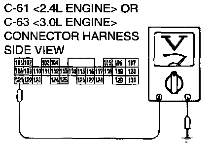 STEP 8. Check the switch output voltage at PCM connector C-61 <2.4L Engine> or C-63 <3.0L Engine> by backprobing.