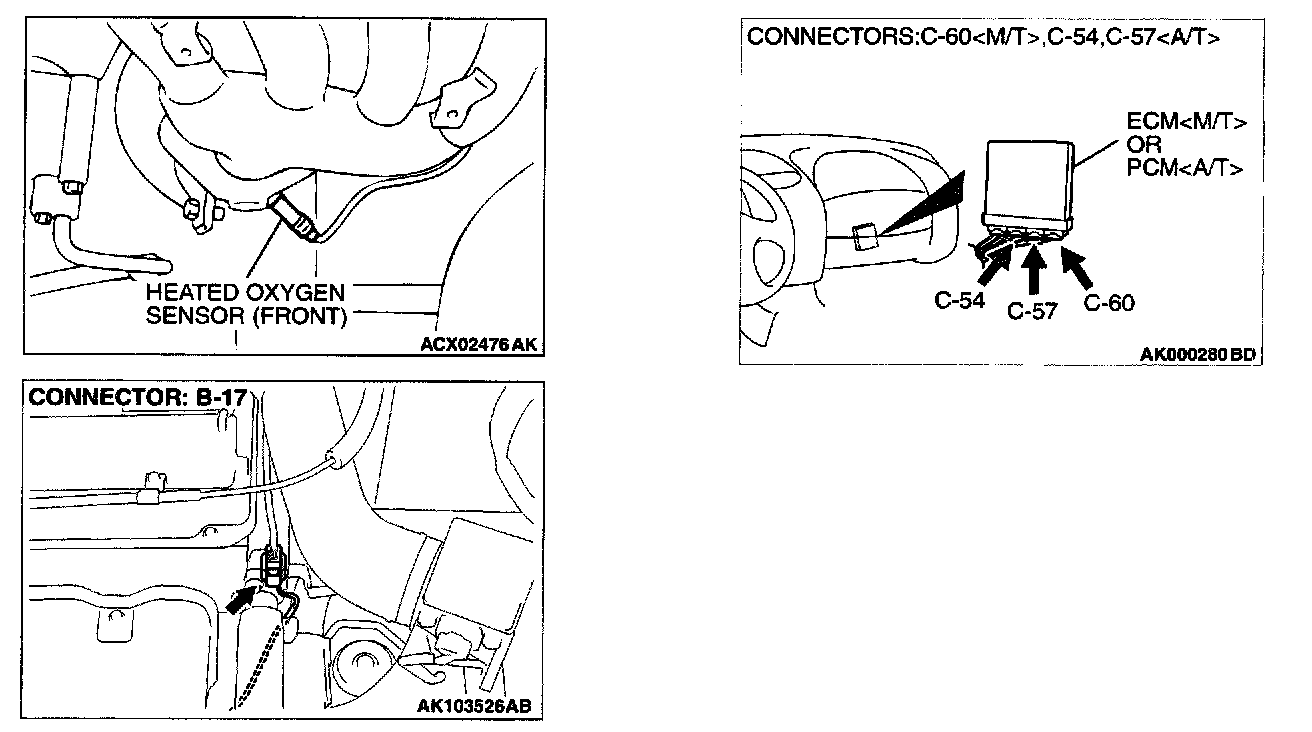 STEP 4. Check connector B-17 at heated oxygen sensor (front) and connector C-60 at ECM