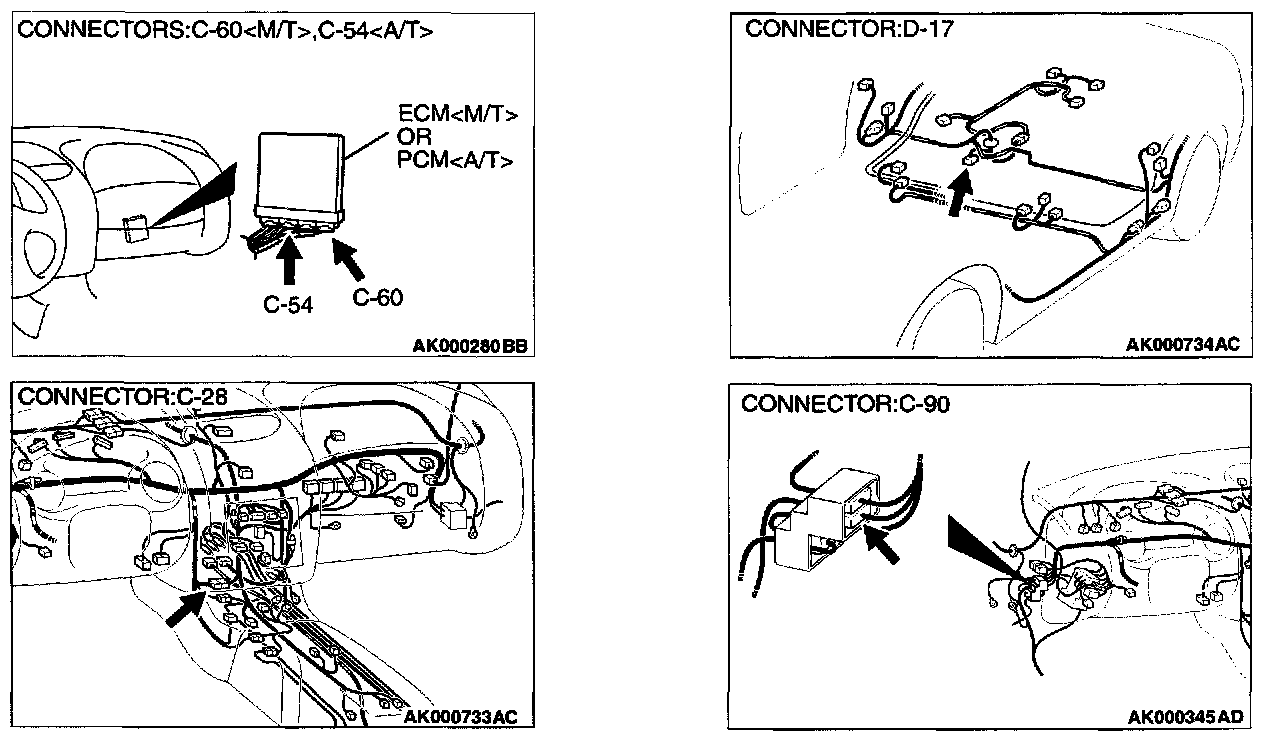 STEP 3. Check connector D-17 at the fuel temperature sensor and connector C-60 at ECM