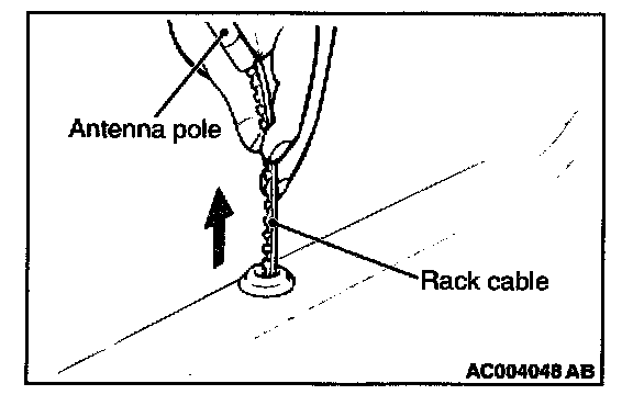 2. After turning the ignition switch to ACC or ON, turn the radio switch to ON to raise the antenna pole, and remove it, together with the rack cable.