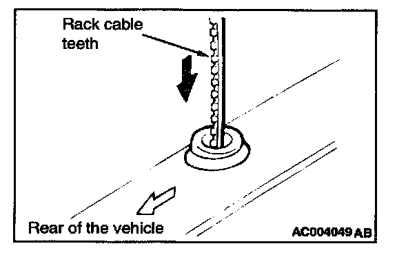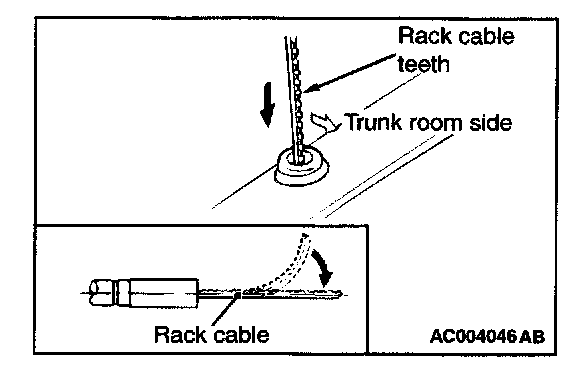 6. If the rack cable pulls out with no resistance when it is lightly pulled, then the cable is not meshed with the motor gear, so check that there are no bends in the end of the rack cable, and then repeat step (4) and (5) above.