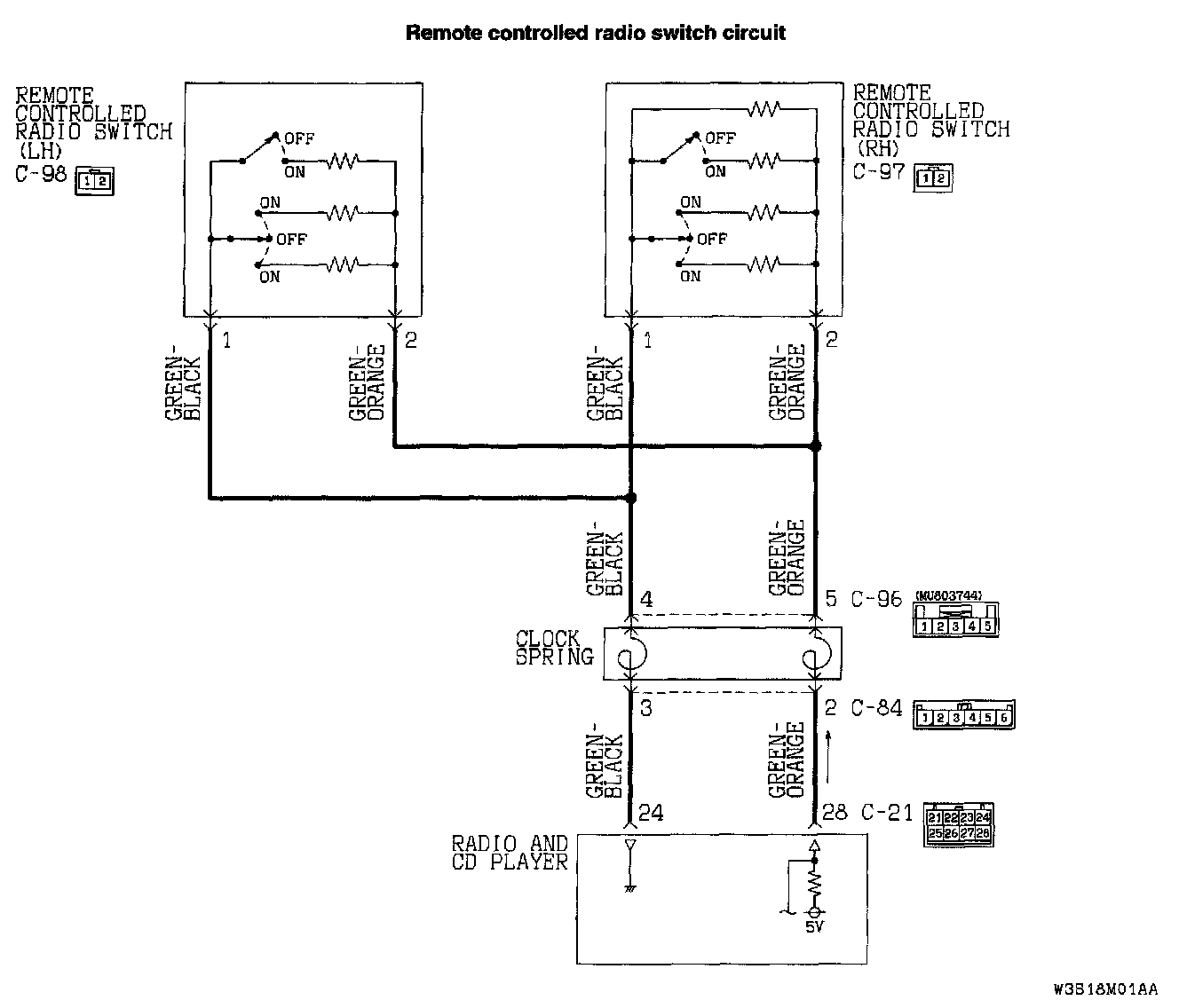 The System Does Not Accept Remote Controlled Radio Switches (RH And LH), But Accepts Radio And CD Player Switches.Remote Controlled Radio Switch Circuit:
