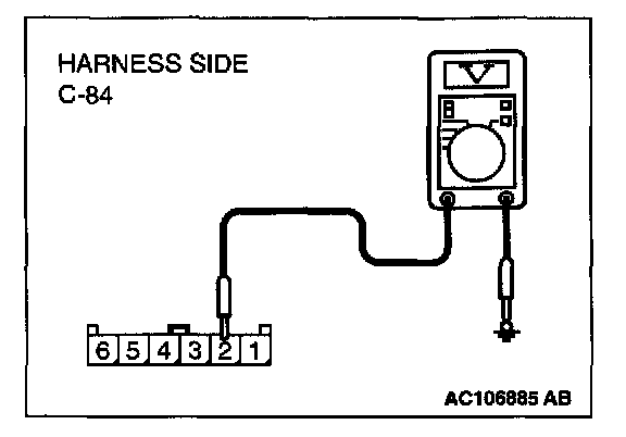 STEP 3. Check the wiring harness between clock spring connector C-84 (terminal 2) and radio and CD player connector C-21 (terminal 28).