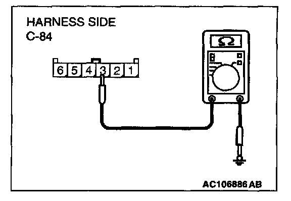 STEP 6. Check the wiring harness between clock spring connector C-84 (terminal 3) and radio and CD player connector C-21 (terminal 24).